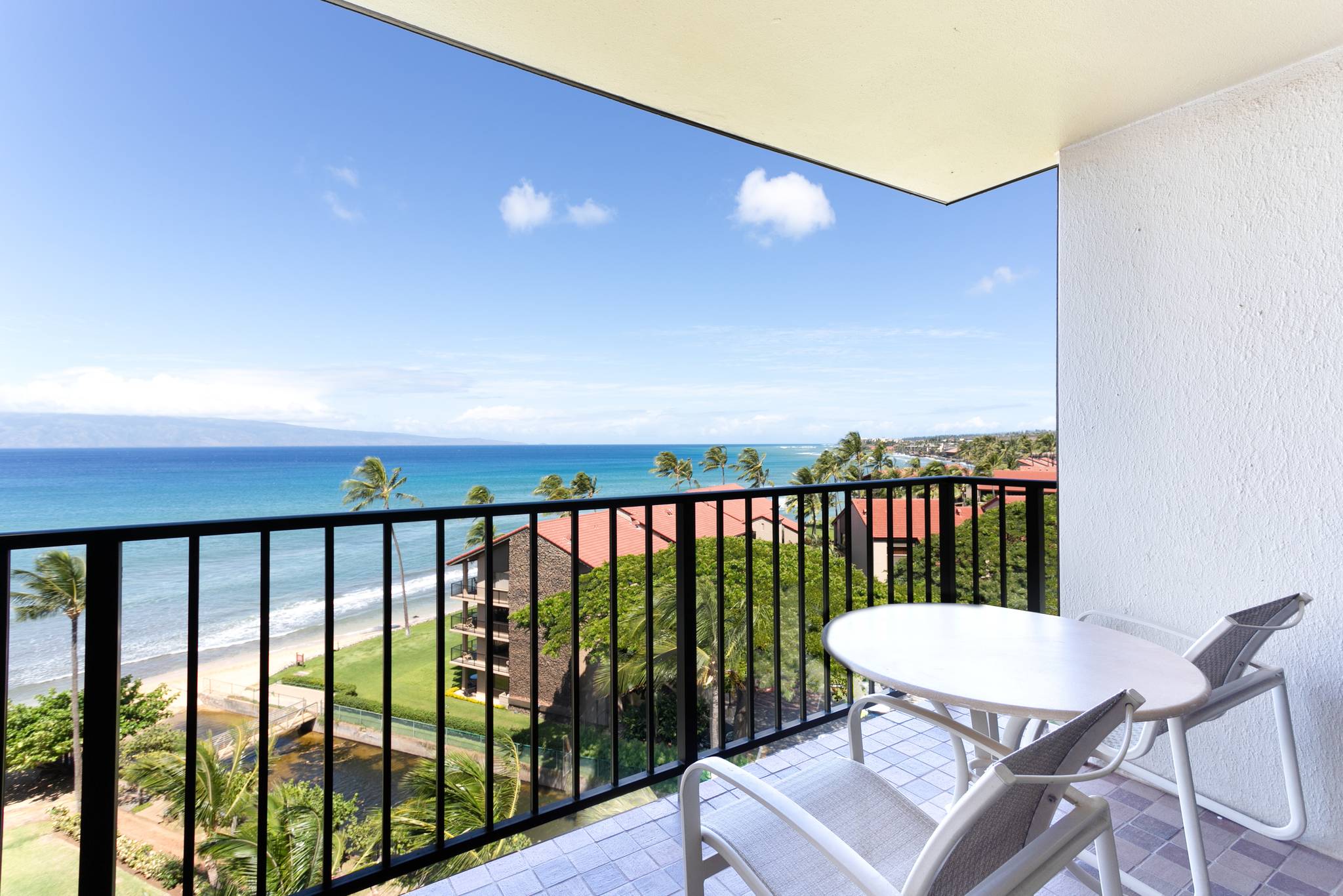 This upscale Kaanapali beachfront property enjoys one of Maui's finest beachfront locations, with spectacular views of its own manicured tropical gardens, the azure blue Pacific, and the awe-inspiring West Maui Mountains. Amenities include two pools, sauna, Jacuzzi, tennis courts, gift shop, salon, convenience store and casual dining restaurant. A fitness center is also available for a fee. Our air-conditioned, spacious studios, one- and two-bedroom units are perfect for small families, featuring fully equipped kitchens, and washer/dryers right in each unit. No Booking Fees or Service Charges!