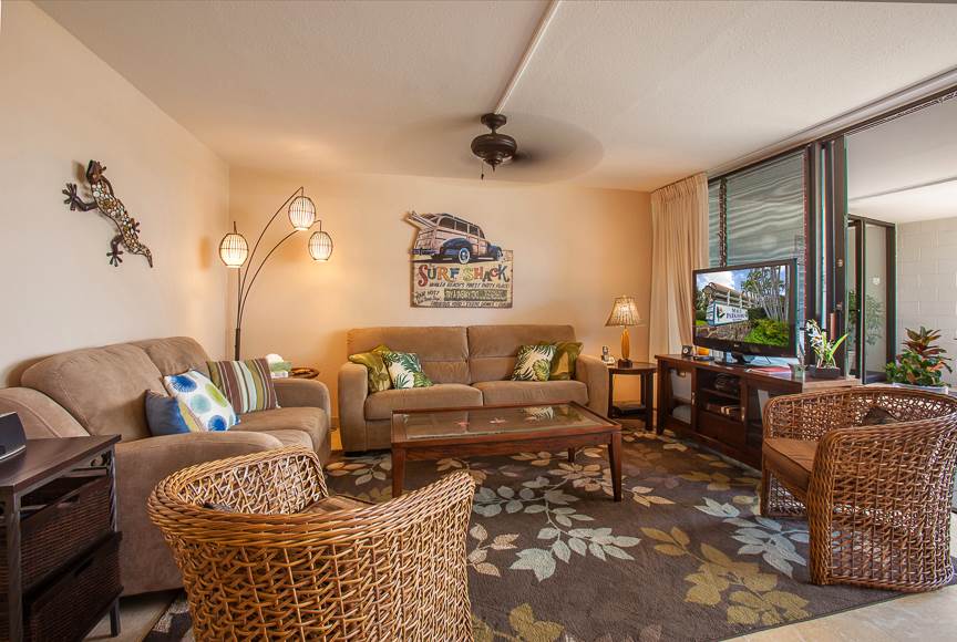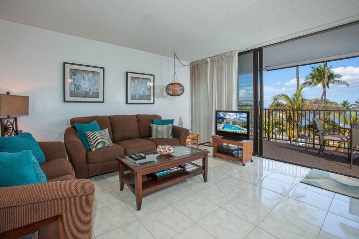 Maui Parkshore is located in South Kihei directly across from Kamaole Beach III, one of Maui's most best beaches for swimming, snorkeling, or simply soaking up the sun. All of the spacious condominiums have a two bedroom, two bath floor plan with large lanai. The lanais offer ocean views of the blue Pacific. In the winter months, humpback whales can often be seen frolicking with their offspring in the waters just off shore.